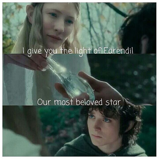 “And you, Ring-bearer,’ she said, turning to Frodo. ‘I come to you last who are not last in my thoughts. For you I have prepared this.’ She held up a small crystal phial: it glittered as she moved it, and rays of white light sprang from her hand. ‘In this phial,’ she said, ‘is caught the light of Eärendil’s star, set amid the waters of my fountain. It will shine still brighter when night is about you. May it be a light to you in dark places, when all other lights go out. Remember Galadriel and her Mirror!’